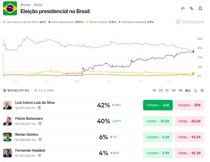 Enquanto o debate político brasileiro ainda tenta definir nomes e alianças, um outro indicador já começa a antecipar movimentos: os mercados de previsão.